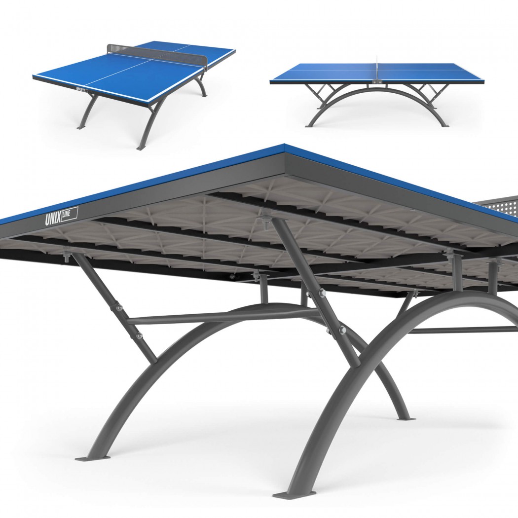 Основой металлической рамы уличного всепогодного теннисного стола UNIX Line являются опоры из стальной трубы Ø60 и толщиной 1,4 мм. Благодаря таким характеристикам конструкции теннисный стол сохраняет жесткость и устойчивость на любых покрытиях.