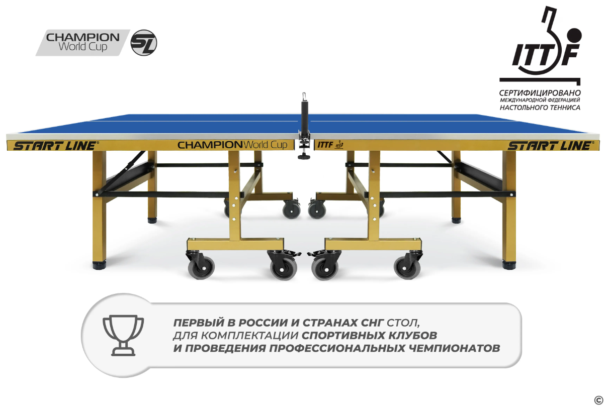 Теннисный стол Champion World Cup — новое прочтение стола Champion, который сертифицирован ITTF (Международной федерацией настольного тенниса), что подтверждает его соответствие стандартам для проведения профессиональных соревнований.