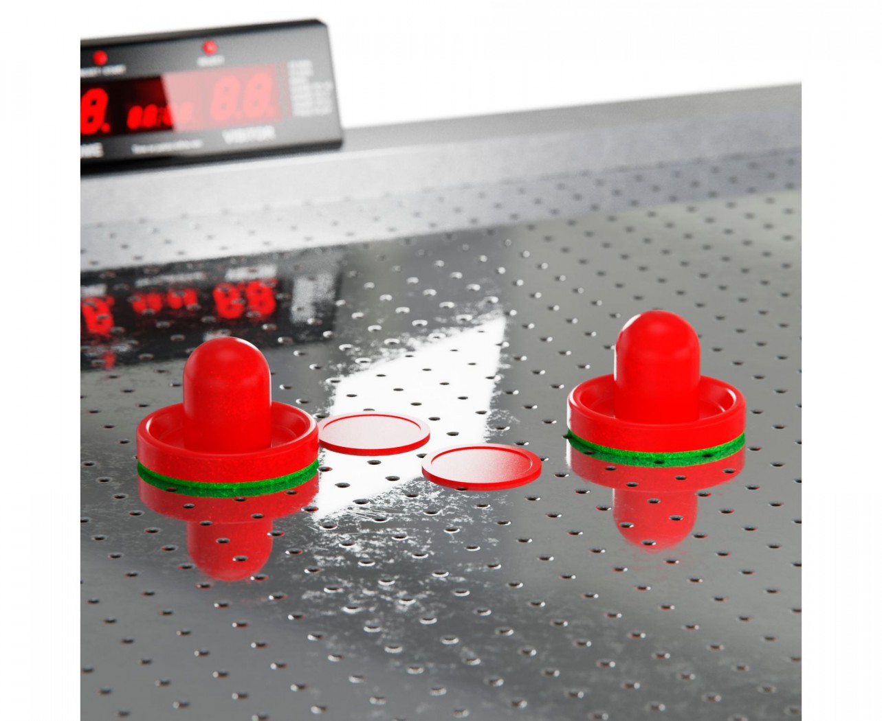 В качестве аксессуаров к столу Opal прилагаются 4 красные биты и 4 красные шайбы для игры. Стол оснащен двигателем вентилятора на 220В для обеспечения движения шайб по игровому полю, а также электронным озвучиванием для создания атмосферы реального хоккейного матча. Благодаря регулируемым ножкам, стол легко устанавливается на неровной поверхности, обеспечивая устойчивость и комфорт во время игры.