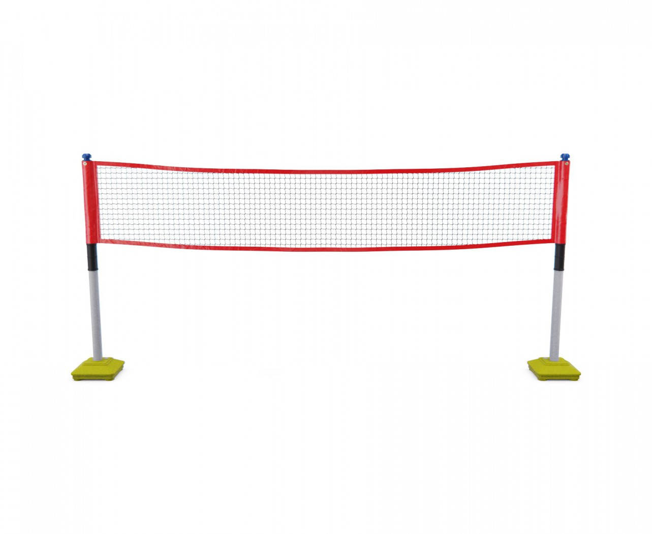 Комплект для игр на природе. В комплекте складная сетка, которую можно настроить для игры в теннис, бадминтон и волейбол. Это возможно благодаря возможности изменить высоту сетки. В качестве утяжелителя используются ёмкости, в которые нужно налить воду. Также в комплекте идёт 2 ракетки для тенниса, два мячика для тенниса, два ракетки для бадминтона и воланчик к ним, мяч для волейбола и насос к нему.