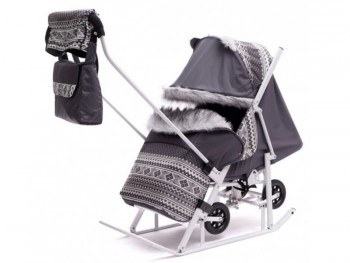 Санки-коляска детские "Скандинавия - 5УМ Люкс + ВК" серый цвет рамы белый