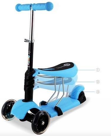 Самокат детский Playshion Scooter M-1 3в1 со светящимися колесами и съемным регулируемым сиденьем (красный)
