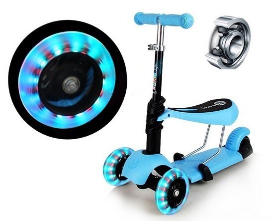 Самокат детский Playshion Scooter M-1 3в1 со светящимися колесами и съемным регулируемым сиденьем (желтый)