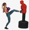 Ключевая особенность – возможность регулировки по высоте. Это значит, что снаряд легко адаптировать под рост спортсмена и различные стили ведения боя. “Короткий” вариант манекена особенно удобен для отработки точных ударов по корпусу, а также ударов ногами на средней высоте. При наполнении основания водой (иногда используют песок) нет необходимости в стационарном креплении, поэтому вы можете свободно перемещать манекен, переставлять его в любой угол спортзала или дома.